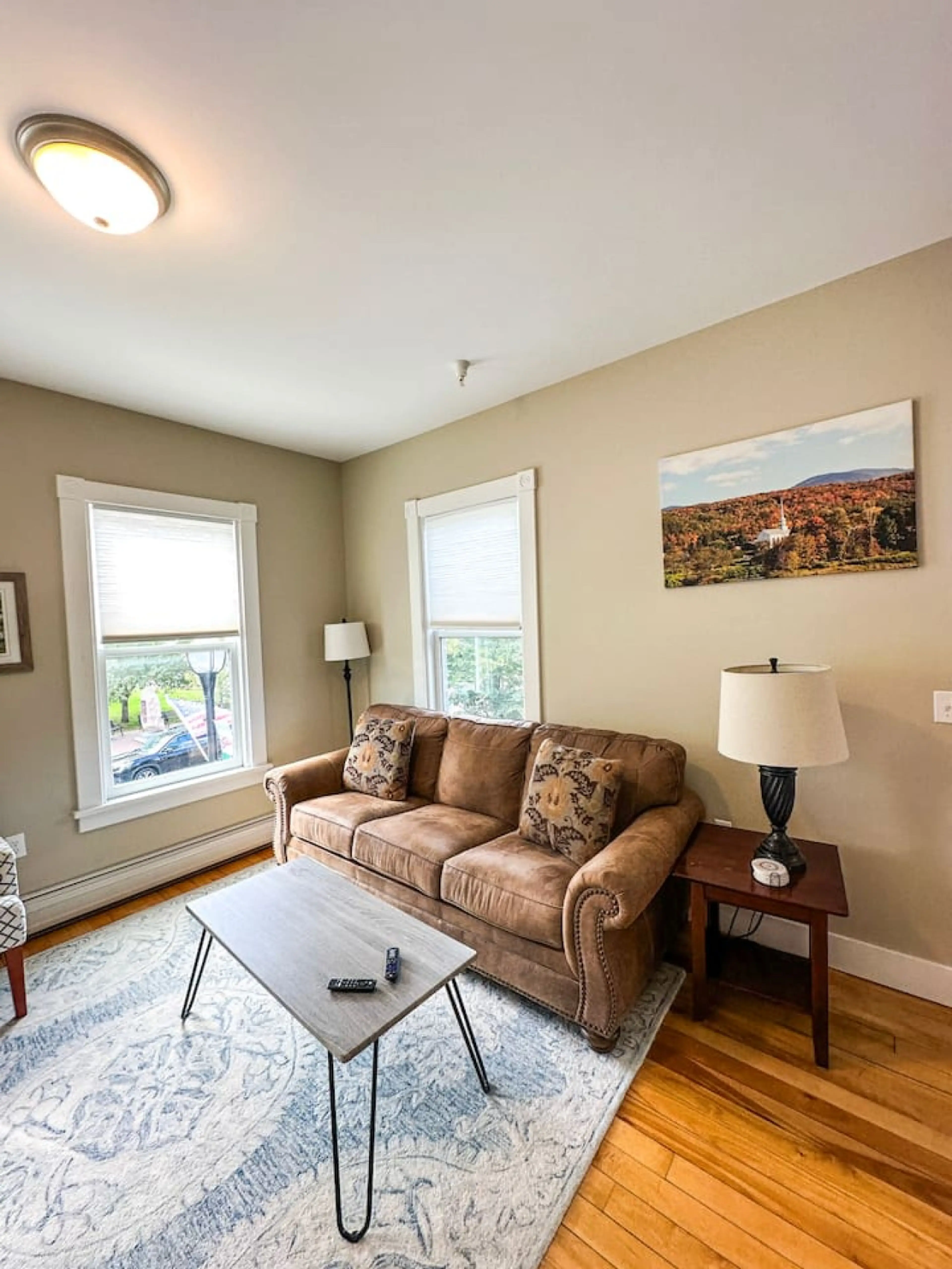 Welcome to the Pinnacle Suite at 109 Main! This two bedroom, two bathroom suite has original hardwood floors. It overlooks Main Street in Downtown Stowe, offering beautiful views! Restaurants, retail shops, cafes and so much more await. After an adventurous day in Stowe, you'll find yourself unwindi...