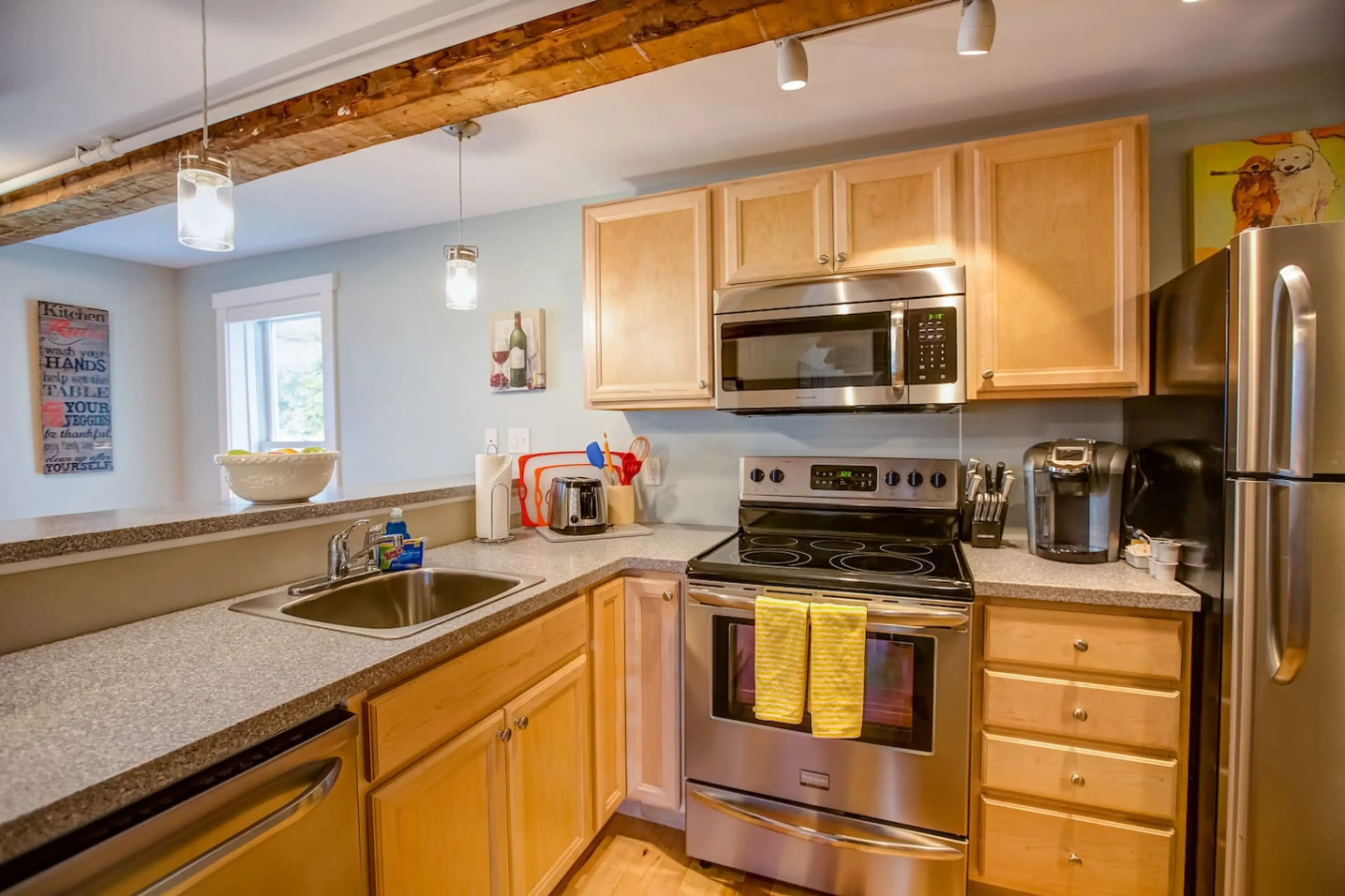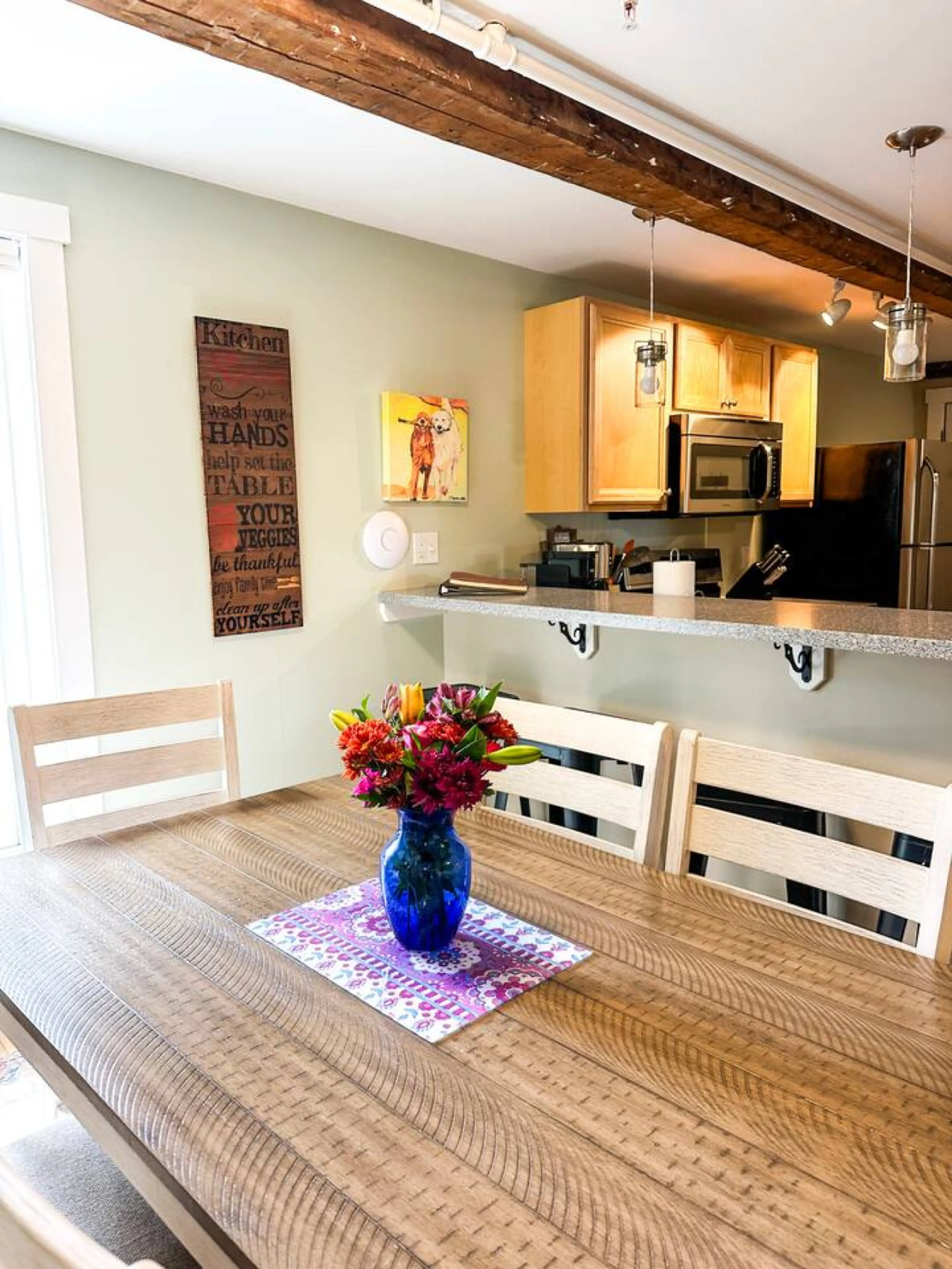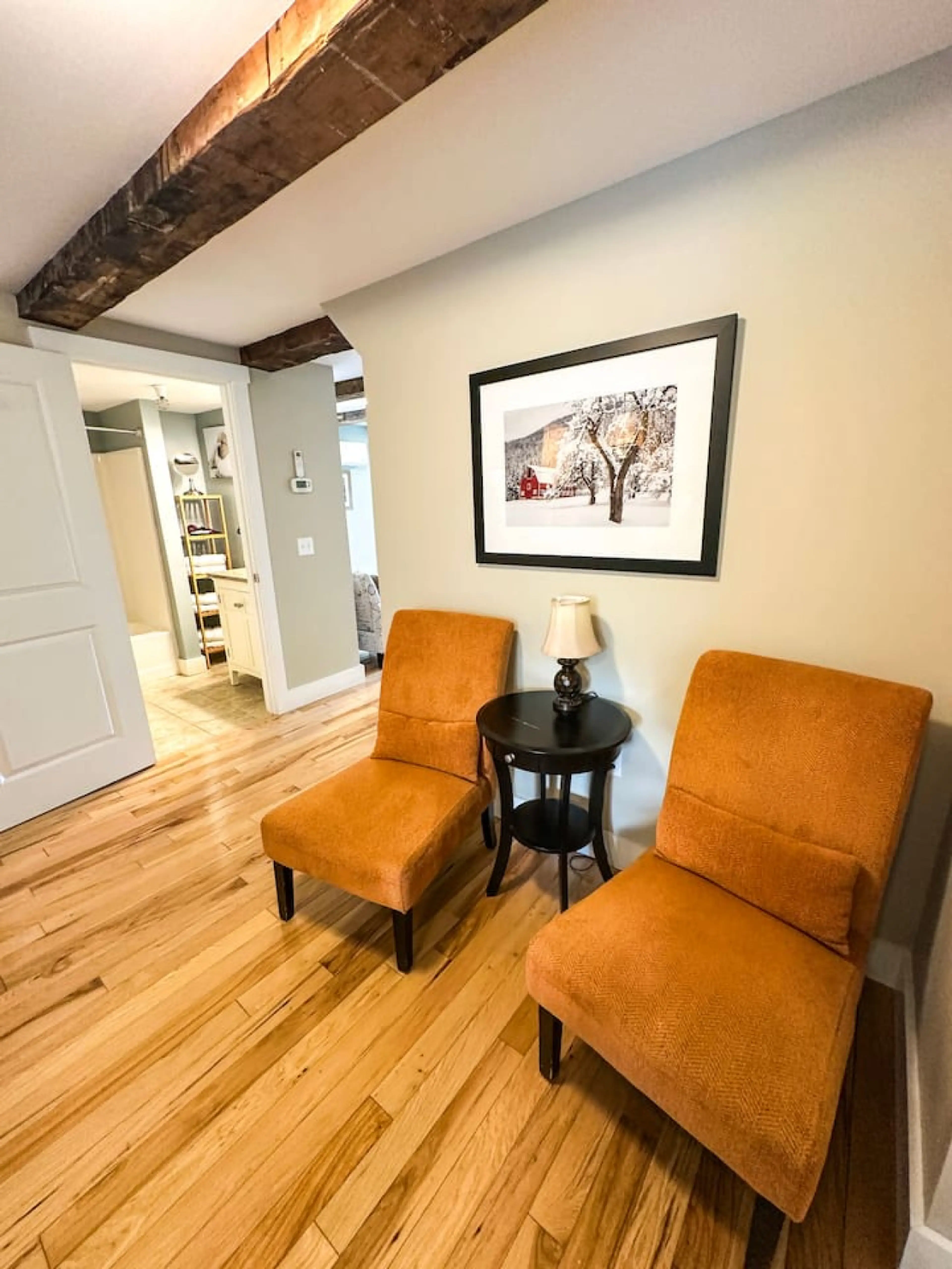 Welcome to the Mansfield Suite at 109 Main! This three bedroom, two bathroom suite has beautiful Hickory hardwood floors and exposed historic beams above. It overlooks Main Street and the Stowe Recreation Path, offering beautiful views right from your window! After an adventurous day in Stowe, you'l...